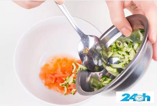 Dùng thìa nạo phần bên trong của cà chua, sau đó thái dưa chuột thành từng miếng nhỏ trộn với cà chua rồi đổ tất cả vào may xay sinh tố. Nghiền chúng thành bột nhão và thêm ít mật ong trộn đều rồi thoa lên da, mát xa nhẹ nhàng.