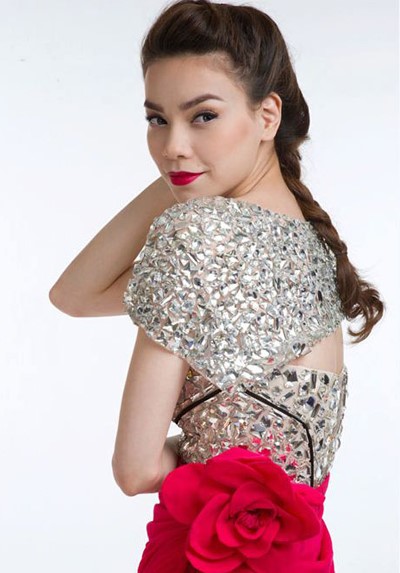Tết tóc đuôi ngựa thấp phía sau vừa dễ tạo kiểu, vừa biến tấu được linh hoạt. Mái tóc tết thích hợp với trang phục lộng lẫy của Hồ Ngọc Hà và ăn ý với cả những thiết kế đơn giản, năng động.