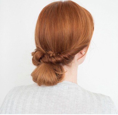 Cuối cùng gấp gọn đuôi tóc vào phía trong và cố định bằng kẹp tóc chữ U.
