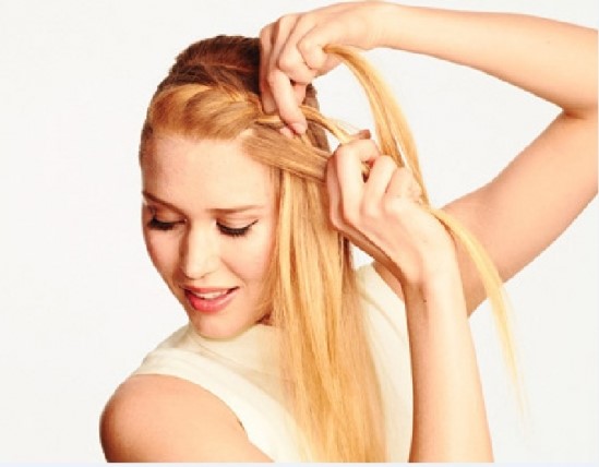Còn lại phần tóc mái bạn hãy bắt tay tết chéo dần ra sau