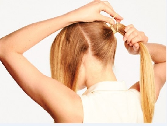 Tiếp theo của cách tết tóc mái đơn giản này là bạn chải gọn phần tóc phía sau và buộc cao lên để có mái tóc đuôi ngựa đẹp và dễ thương.