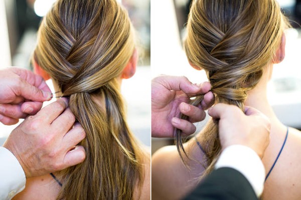 Thêm một gợi ý khác cho kiểu tóc đuôi ngựa buộc thấp đó là kiểu tết tóc xương cá nhưng chỉ tết từ nửa đầu đến phần tóc chạm gáy và phần đuôi tóc còn lại cột chặt như kiểu tóc đuôi ngựa buộc thấp bình thường.