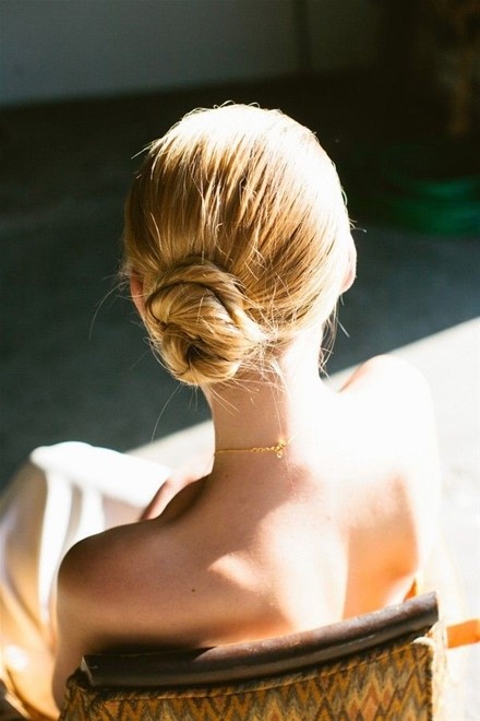 Ngoài kiểu tóc búi thấp trên, các quý cô có thể lựa chọn kiểu tóc búi cuộn xoắn, kiểu tóc này cũng rất đơn giản, bạn chỉ cần cố định toàn bộ phần tóc sau đó xoắn phần đuôi tóc, cuộn lại sau đó dùng ghim hoặc chun để cố định phần búi.