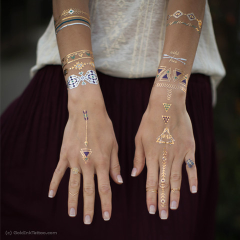 Những hình xăm tạm thời dùng được vài ngày là biện pháp hữu hiệu cho những cô nàng muốn biểu đạt phong cách nhưng không muốn chịu đau đớn khi xăm mình. Ngoài ra, khi diện những hình xăm này, bạn có thể dễ dàng thay thế bằng hình khác nếu đã chán.