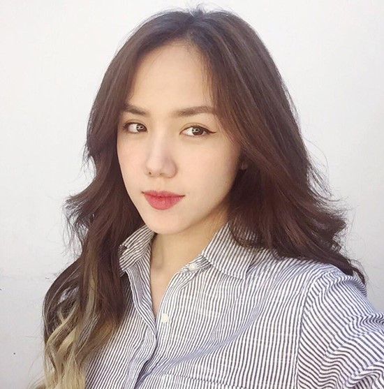 Sau thời gian đổ xô theo trào lưu tóc tẩy màu nổi, các hot girl Việt đang dần quay lại với những màu tóc khá truyền thống. Khả Ngân nhuộm nâu vàng, cơ bản nhưng rất tôn da.