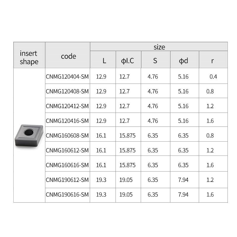 Dụng cụ cắt gọt kim loại Chip tiện CNMG120404-SM sử dụng trong ngành gia công cơ khí, là dụng cụ có độ cứng cao hơn chi tiết gia công, được lắp đặt vào máy công cụ (máy tiện, máy phay, máy bào, máy khoan,..) nhằm phục vụ cho ngành gia công cơ khí, nhằm mục đích chế tạo ra các chi tiết cơ khí, phục vụ cho việc lắp ráp, chế tạo hoặc sửa chữa máy móc, thiết bị.