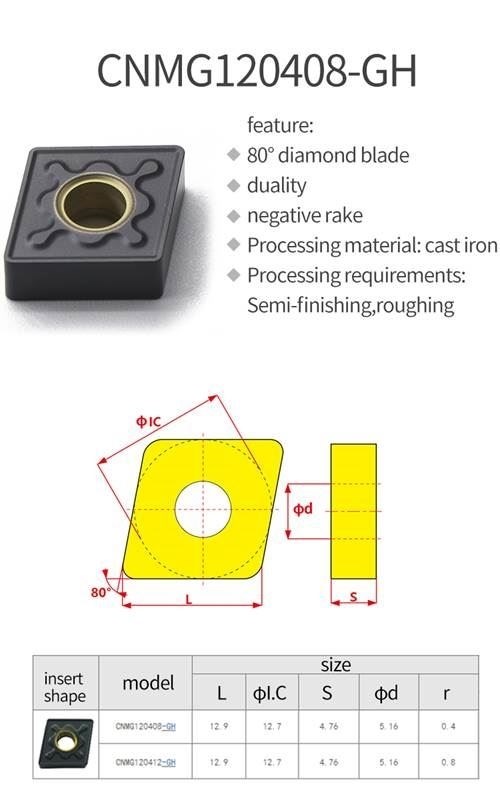 Dụng cụ cắt gọt kim loại Chip tiện CNMG120408-GH sử dụng trong ngành gia công cơ khí, là dụng cụ có độ cứng cao hơn chi tiết gia công, được lắp đặt vào máy công cụ (máy tiện, máy phay, máy bào, máy khoan,..) nhằm phục vụ cho ngành gia công cơ khí, nhằm mục đích chế tạo ra các chi tiết cơ khí, phục vụ cho việc lắp ráp, chế tạo hoặc sửa chữa máy móc, thiết bị.