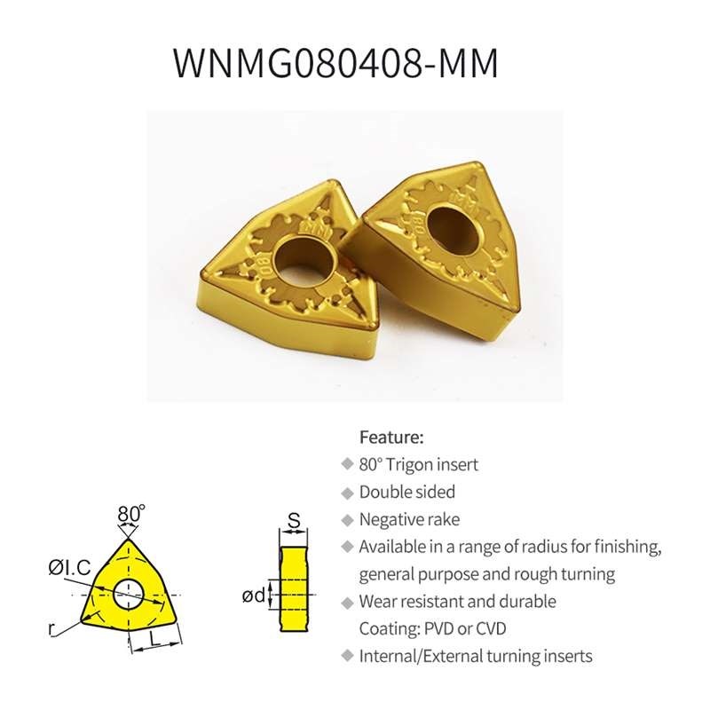 Trong ngành gia công kim loại, dụng cụ cắt gọt Chip tiện WNMG080408-MM được sử dụng để loại bỏ vật liệu khỏi phôi bằng phương pháp bóc tách kim loại là cực kỳ quan trọng